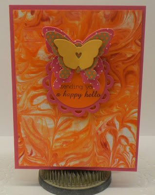 Here is the one of the set of Birthday cards using Betsy's technique. Love this set of cards. I made them in Pure Poppy, Summer Sunrise, Aqua Mist, Fine Linen, Simply Chartreuse, Melon Berry.